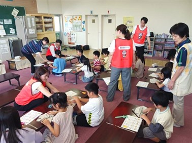 明日葉が運営する福島県郡山市の放課後児童クラブでは、8月に3日間にわたって、損害保険ジャパン株式会社のご協力のもと「防災ジャパンダプロジェクト」を実施しました。損害保険ジャパン株式会社の社員の方々が先生となり、こどもたちに災害で役立つ知識を教えていただきました。