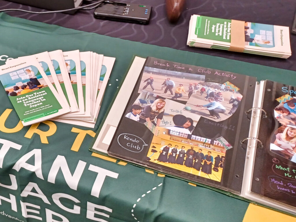 すぐに応募できるQRコード付きのパンフレットや、ALTが日本でどんな風に過ごしているのかが分かるアルバムを展示したりしました📖