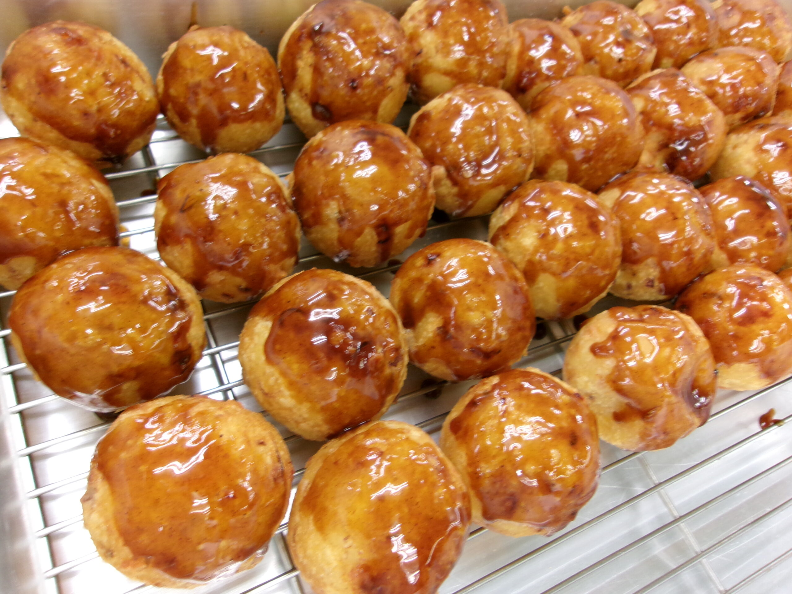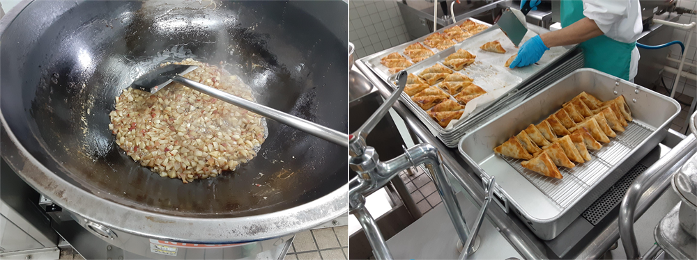 試作段階ではきれいに揚げられず、どうしたらうまくいくか考えた結果、油に入れる前に小麦粉をはたくことを栄養士先生にご提案。すると、きれいな揚げ色が付いたタコ焼きが完成✨ 無事に児童の皆さんへ提供することができました。
