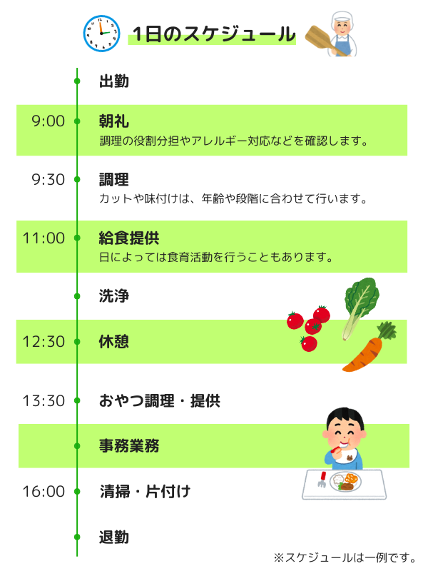 明日葉保育園の給食室の一日をご紹介しています。