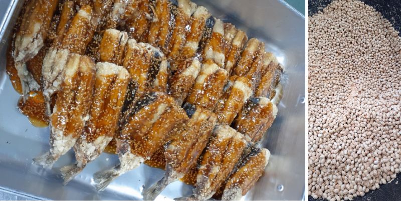 イワシは米粉と片栗粉でサックリと揚げ、ゴマ入りのタレを絡めて濃いめに味付け。こどもたちに好評でした!